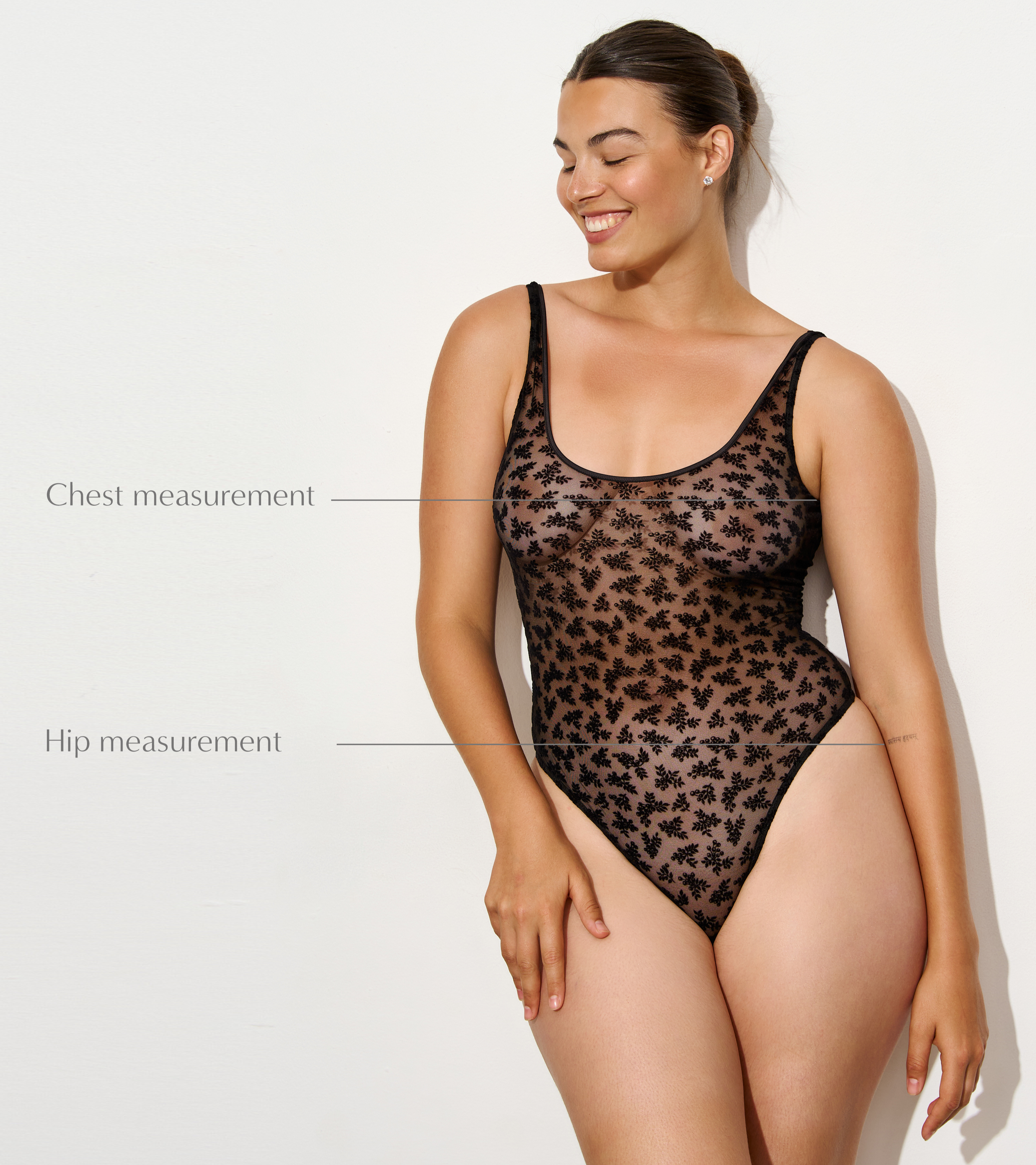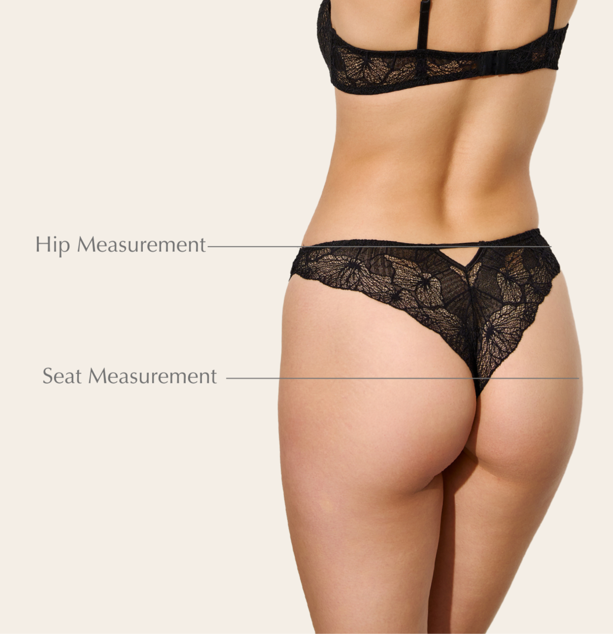 Hip measurement: If you are wearing a classic panty, you can run the measuring tape along the top of it. The hip line is about 10 cm below the navel.